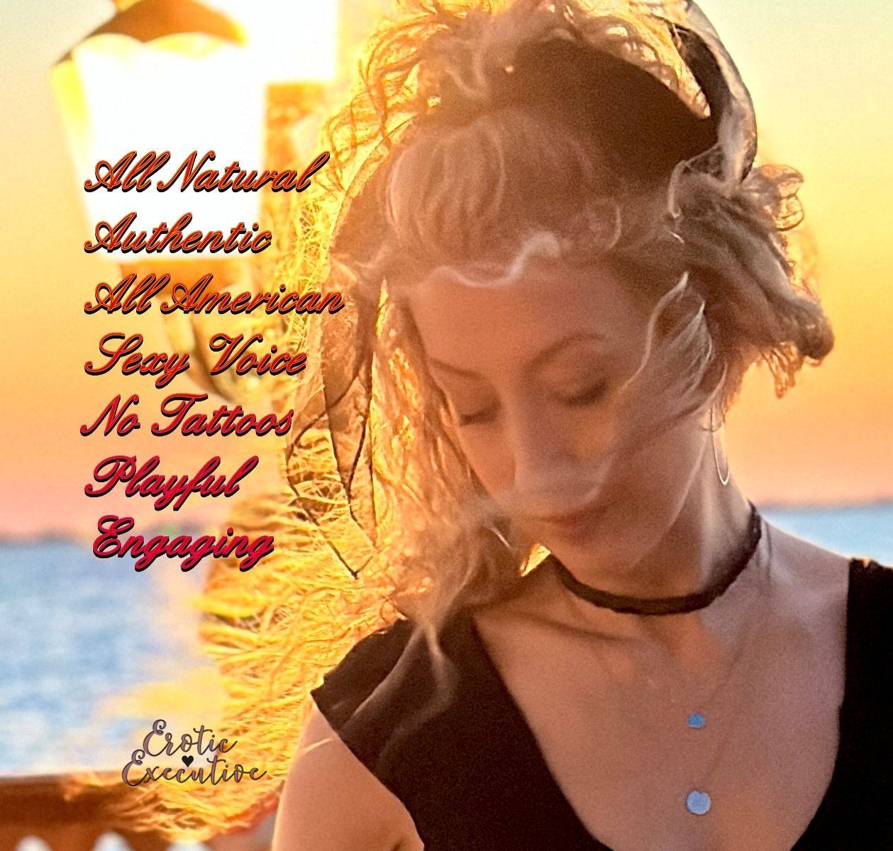 I have long curly blonde hair, blue eyes, and a natural body... no enhancements, piercings, or tattoos! Though, I do have some tan lines to show off... ;)